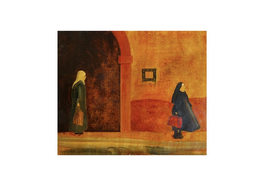 Two nuns, East Germany. (Oil sketch)