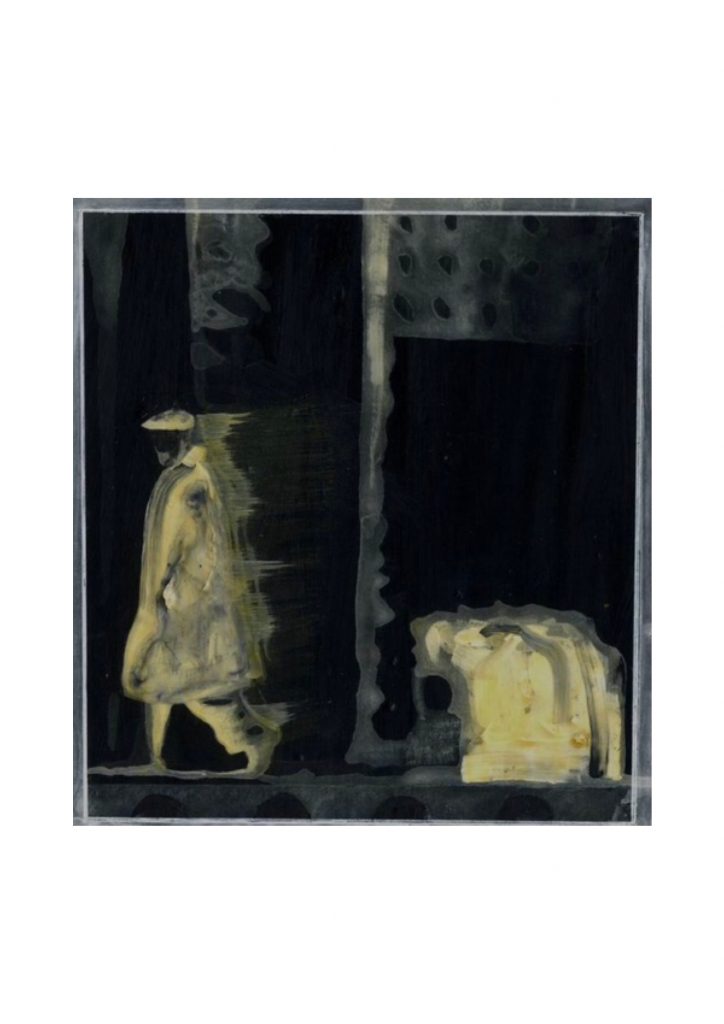Man leaving a department store, East Germany. (Oil)