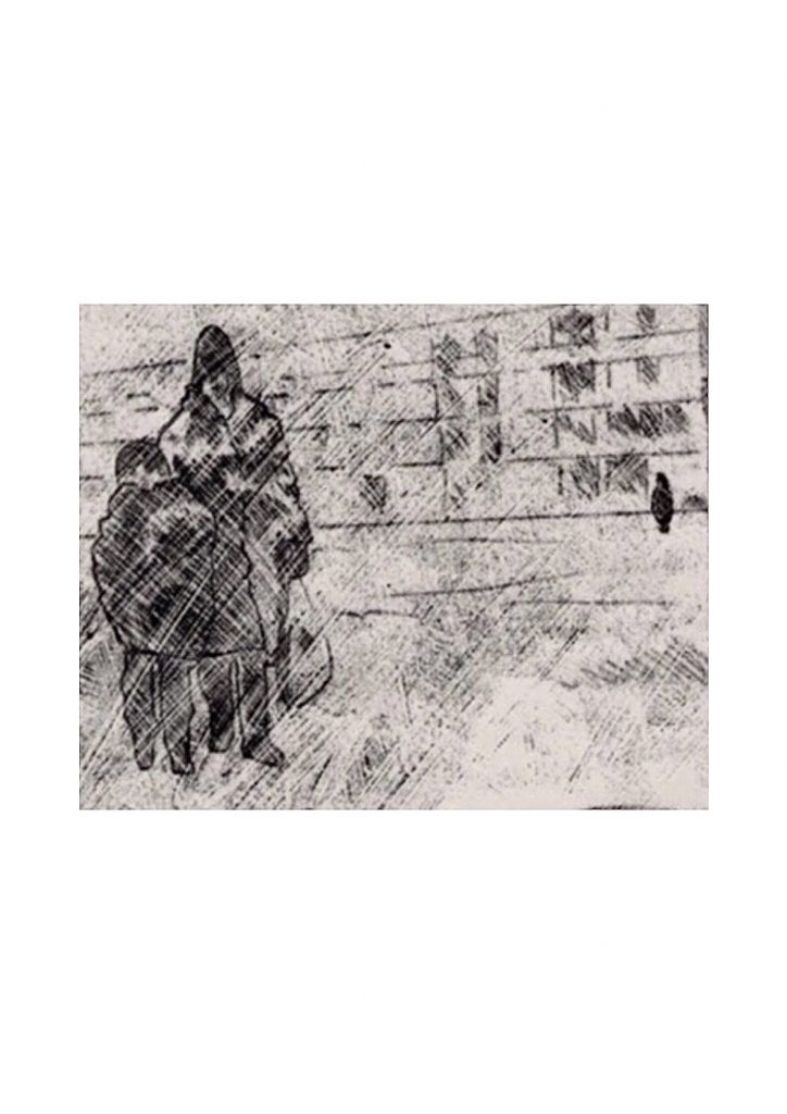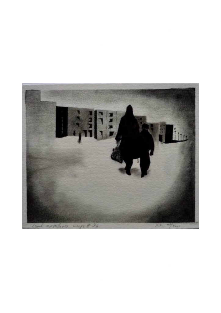 Pedestrians, Czech Surveillance, Charcoal, pencil drawing.